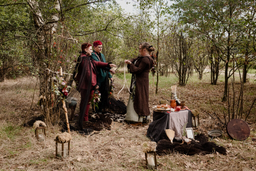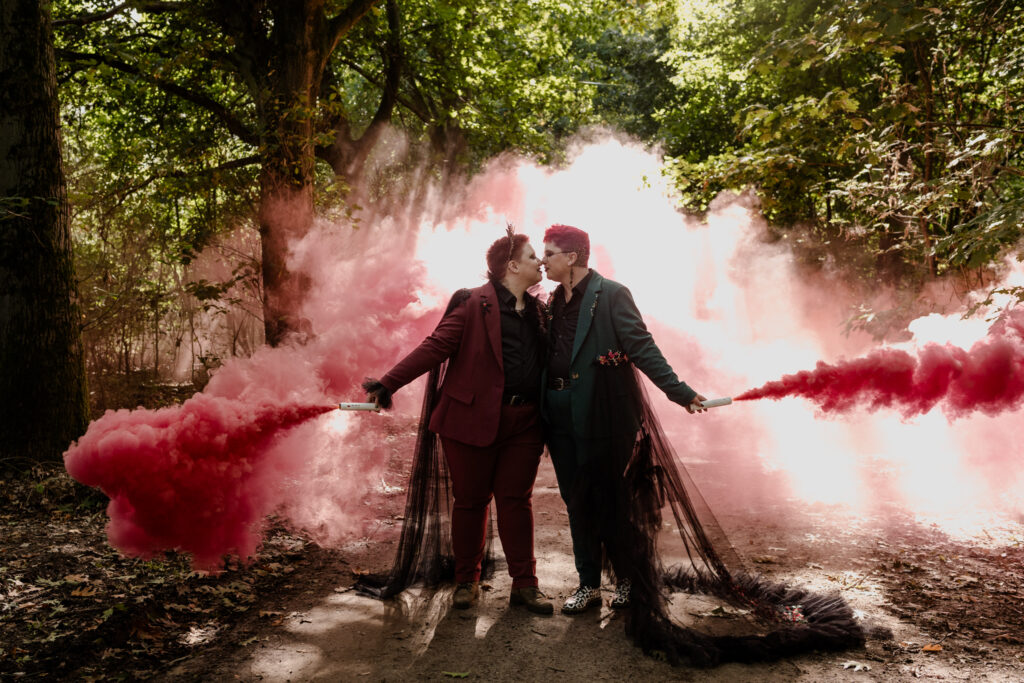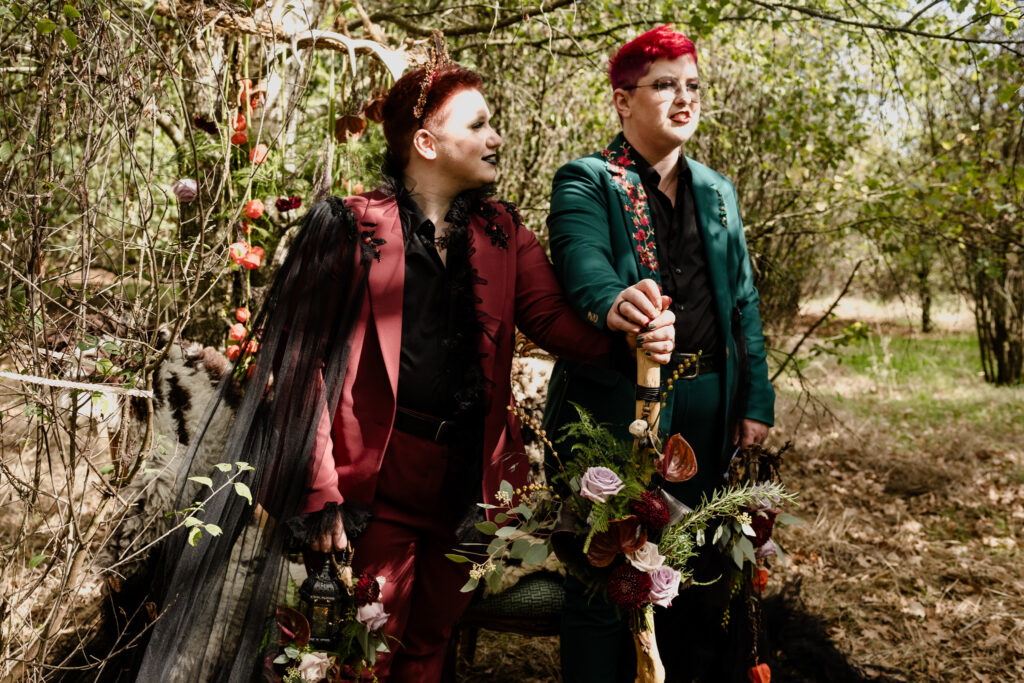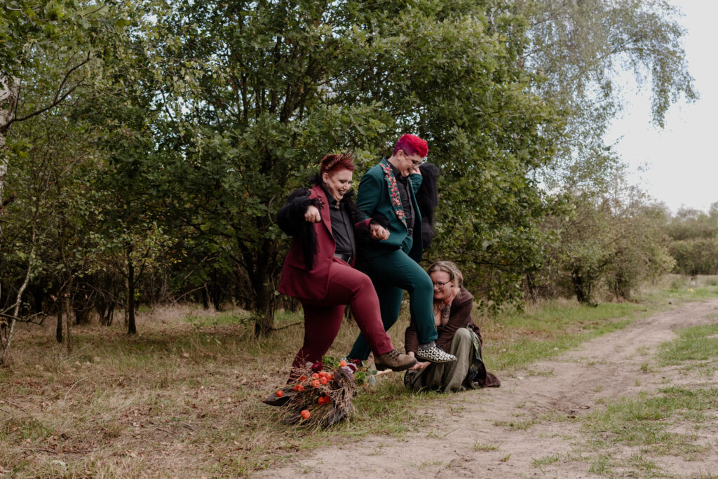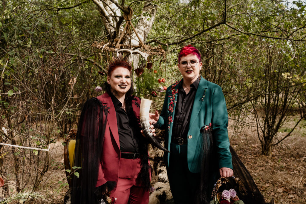 Woodland Witch is een intiem elopementverhaal waarin liefde, natuur en symboliek samenkomen. In een rustig herfstbos gaven Fae & Tess, een curvy, non-binair koppel, opnieuw betekenis aan hun verbinding, dit keer op een manier die volledig bij hén past. De ceremonie bevatte subtiele pagan geïnspireerde rituelen, kleine handelingen die de magie van het moment versterkten en het gevoel gaven dat het bos zelf getuige was.